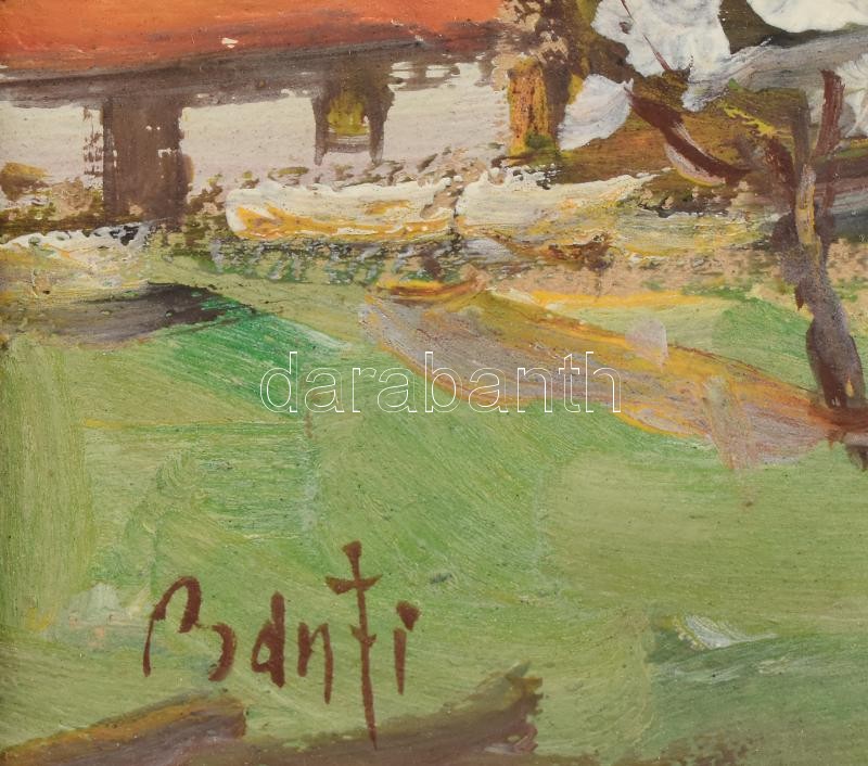 Bánfi jelzéssel: Tavaszi táj virágzó fákkal. Olaj, karton. Dekoratív, ...