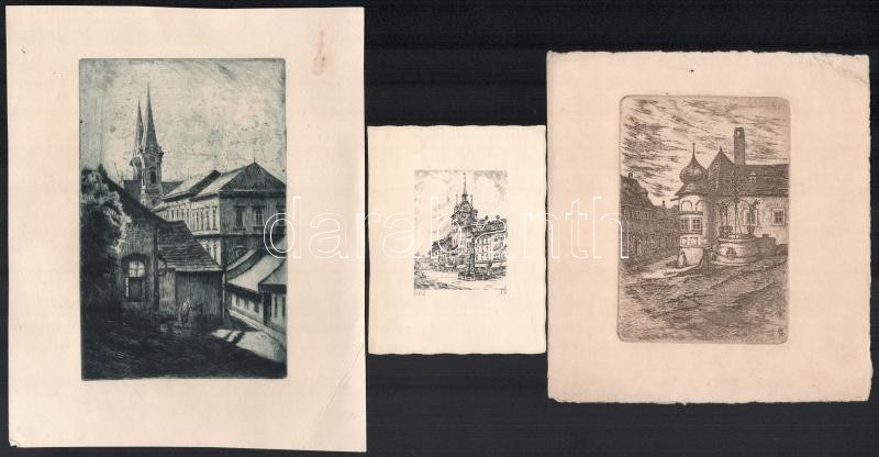 Jelzés nélkül: 5 db rézkarc, papír. Egyik olvashatatlan jelzéssel. 6x4...