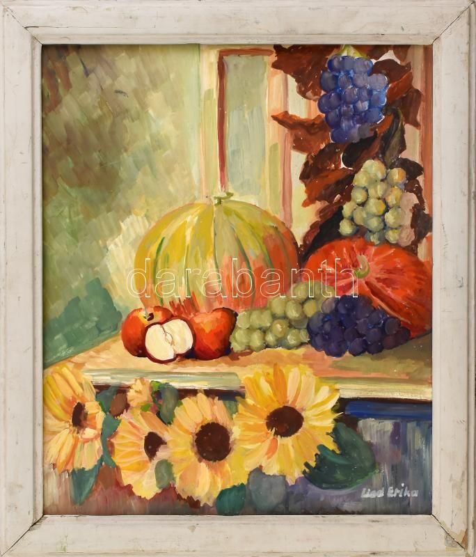 Lied (?) Erika jelzéssel: Csendélet. Olaj, karton. Kissé sérült fakere...