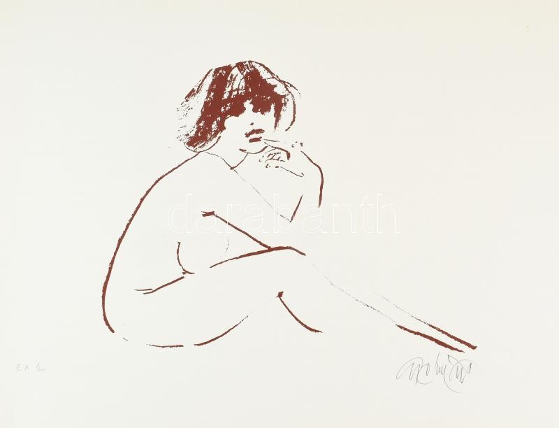Gyémánt László (1935-): Női akt. Szitanyomat, papír, jelzett, művészpéldány E.A./Ex. jelzéssel. Lapméret: 49x65 cm / Screenprint on paper, signed, artist's proof.
