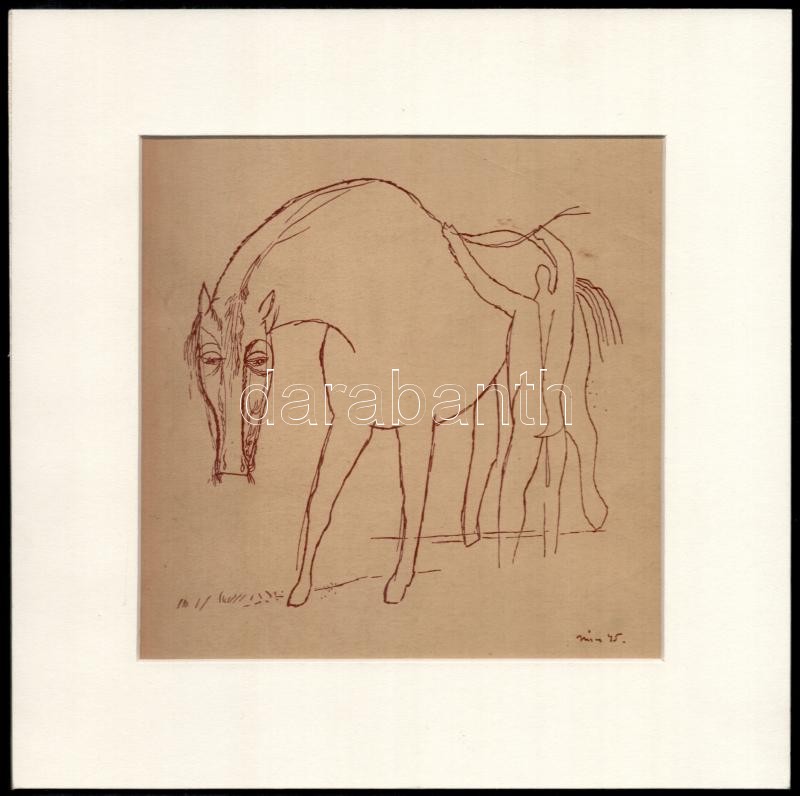 Hincz Gyula (1904-1986): Kantározás. Litográfia, paszpartuban, jelzés ...