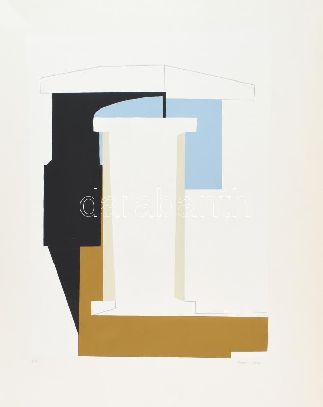 Description: Mark (Márkus), Anna (1928-): Konstruktivista kompozíció, 1990. Szitanyomat, papír, jelzett, művészpéldány E.A. jelzéssel, lap bal felső sarkában kisebb törésnyommal. 46x34 cm