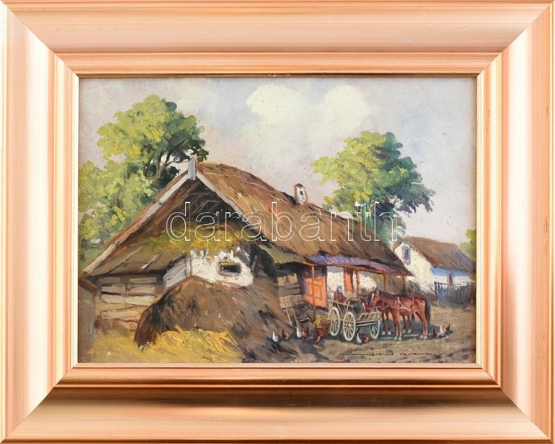 Németh György (1888-1962): Tanya. Olaj, vászon, jelzett. Dekoratív fa keretben, 35x25 cm