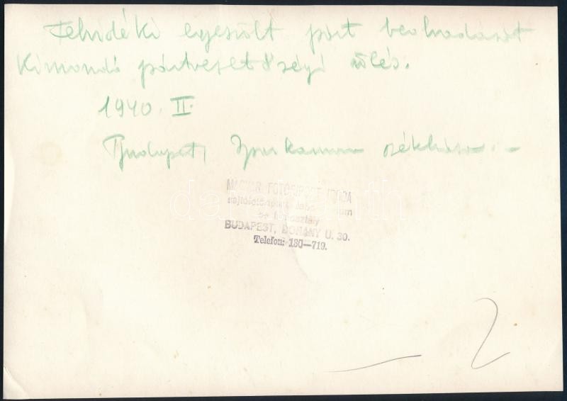 1940 A Felvidéki Egyesült Párt beolvasztását kimondó pótvezetőségi ülés a budapesti iparkamara székházában 24x17 cm