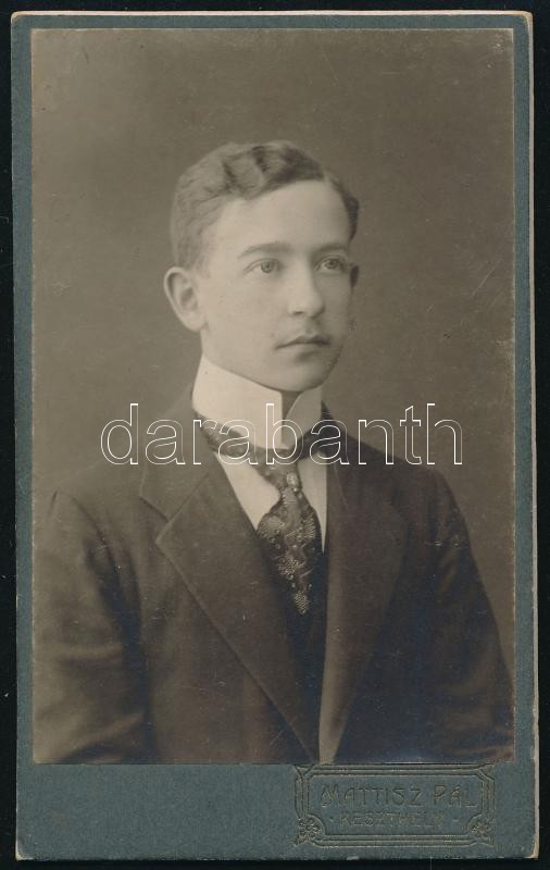 cca 1910 Fiúportré, keményhátú fotó Mattisz Pál keszthelyi műterméből,...
