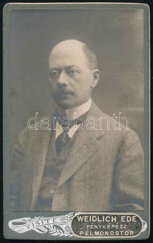 cca 1915 Férfiportré, keményhátú fotó Weidlich Ede pélmonostori műterm...