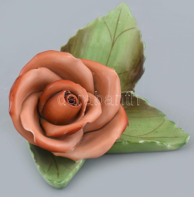 Herendi rózsa, kézzel festett porcelán, jelzett, apró lepattanásokkal, 9x7,5cm