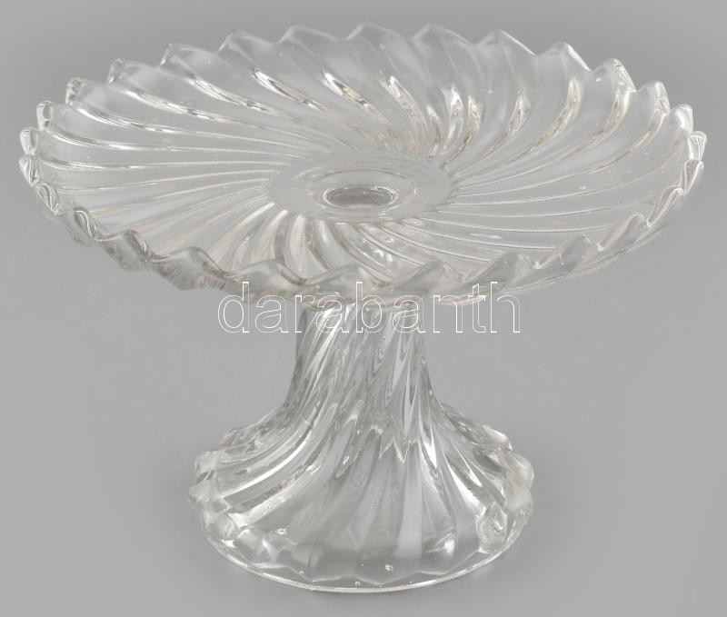 Öntött üveg talpas kínáló, kopásnyomokkal, m:14cm