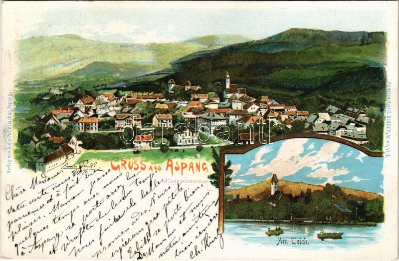 1898 (Vorläufer!) Aspang, Am Teich. Kunstanstalt C. Binder Art Nouveau...