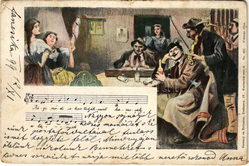 1899 (Vorläufer) Régimódi sokan tudják... Magyar folklór művészlap. Szénásy és Reimann No. 431. / Hungarian folklore art postcard (kopott sarkak / worn corners)