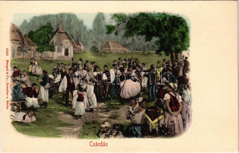 Csárdás. Magyar folklór művészlap / Hungarian folklore art postcard, folk dance. Stengel & Co.