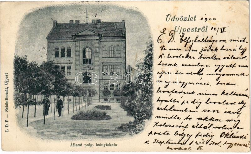 1900 Budapest IV. Újpest, Állami polgári leányiskola. Schön Bernát kiadása (EK)