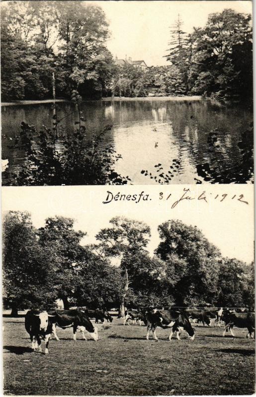 1912 Dénesfa, Grófi kastély, park, szarvasmarhák a legelőn (EK)