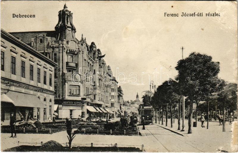 https://www.darabanth.com/en/414-Online-auction/414.0/Postcards/Hungary~1500003/1915-Debrecen-Ferenc-Jozsef-uti-reszlet-villamos-Kontsek-Kornel-Toth-Gyula-uzlete-Aczel-~II2595772