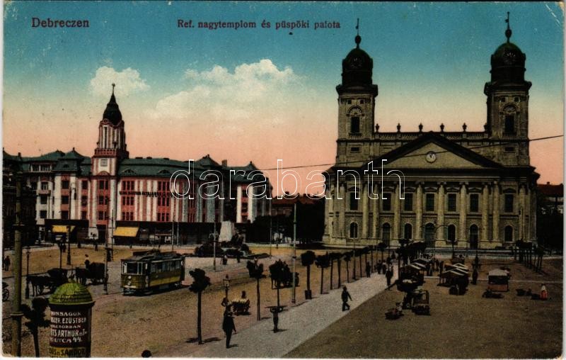 https://www.darabanth.com/en/414-Online-auction/414.0/Postcards/Hungary~1500003/1916-Debrecen-Reformatus-nagytemplom-es-puspoki-palota-villamos-piac-Elso-Magyar-Altalano~II2586651
