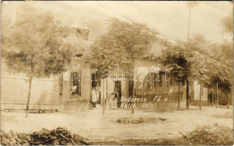 1927 Budakeszi, Fő utca, Nattó üzlete. photo (fa)