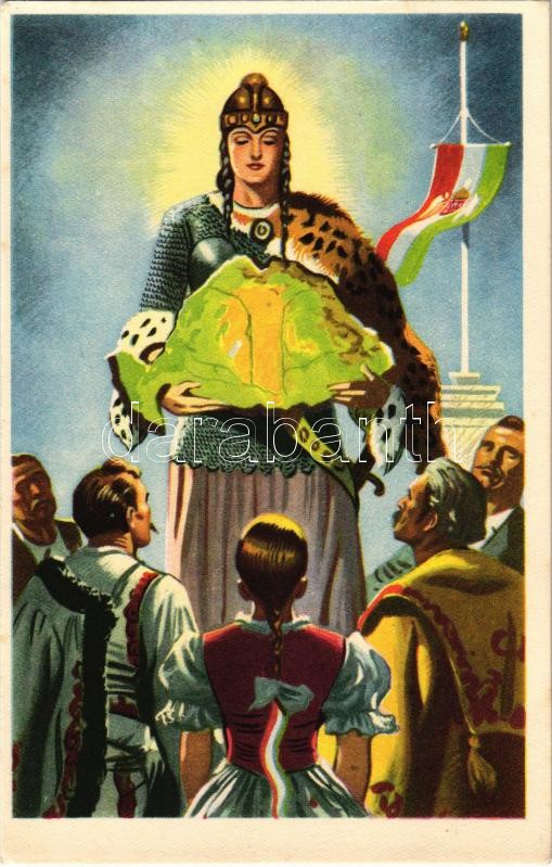 Magyar egység. Kiadja az Ereklyés Országzászló Nagybizottsága / Hungarian irredenta propaganda art postcard, Treaty of Trianon