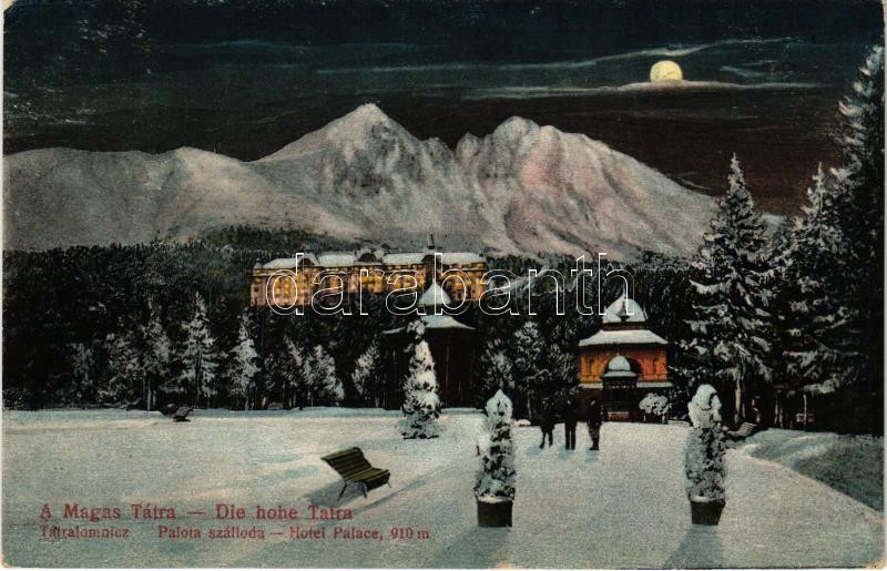 1915 Tátralomnic, Tatranská Lomnica (Tátra, Magas-Tátra, Vysoké Tatry); Palota szálloda este / Hotel Palace at night (EK)