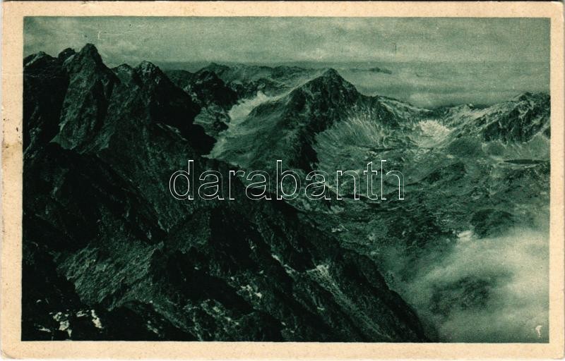 Description: 1930 Tátra, Magas-Tátra, Vysoké Tatry; Vyhlad so Slavkovskej stítu na sever / Aussicht von der Schlagendorfer Spitze nach Norden / Kilátás a Nagyszalóki-csúcsról / mountain peaks (Rb)