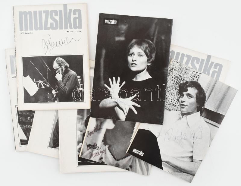 Description: 1977 A Muzsika teljes évfolyama 30-40 aláírással énekesektől, zeneszerzőktől: José Carreras, Lamberto Gardelli, Molnár Antal, Gergpr Jószef, Maurice André. Ránki Dezső és még sokan mások.