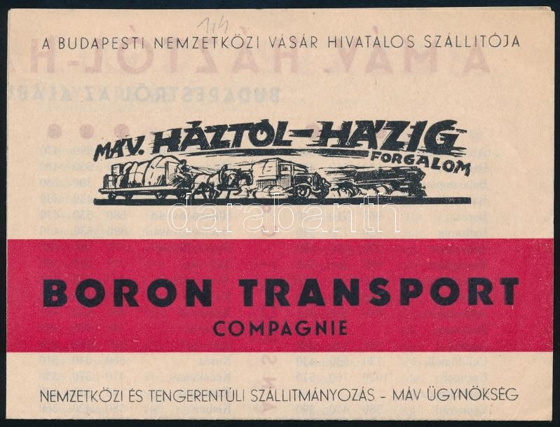 cca 1930 Boron Transport Compagnie (BNV hivatalos szállítója) díjszabá...