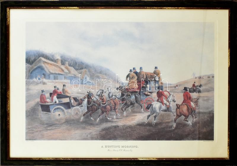 cca 1980-2000: A hunting morning (reggeli vadászat). Régi metszetről k...
