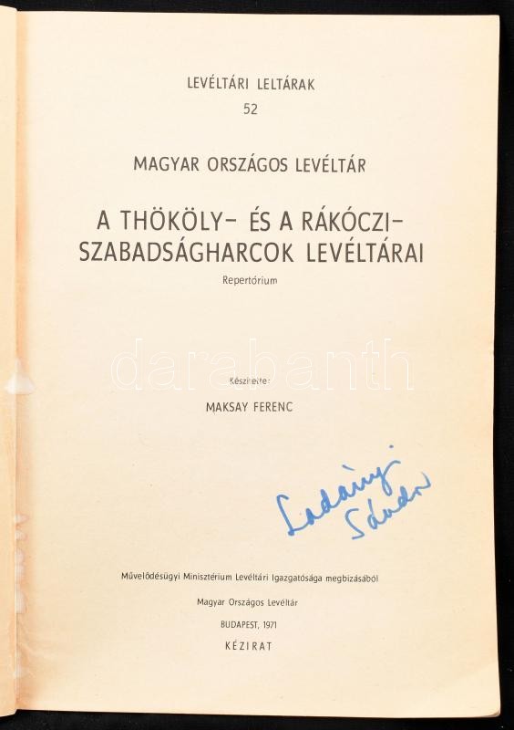 Magyar Országos Levéltár 2 db kiadványa: Maksay Ferenc: A Thököly- és ... https://www.darabanth.com/en/415-Online-auction/415.0/Books/Books-History~1500009/Magyar-Orszagos-Leveltar-2-db-kiadvanya-Maksay-Ferenc-A-Thokoly-es-a-Rakoczi-szabadsagh~II2602272