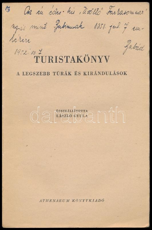 Turistakönyv. A legszebb túrák és kirándulások. Összeáll.: László Gyul... https://www.darabanth.com/en/415-Online-auction/415.0/Books/Books-Travelling-Local-History~1500005/Turistakonyv-A-legszebb-turak-es-kirandulasok-Osszeall-Laszlo-Gyula-Bp-en-Athenae~II2600474