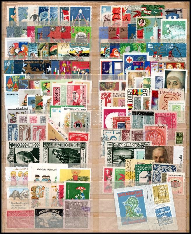 139 db európai levélzáró és reklámbélyeg A/4-es berakólapon + 2 db kisív és 1 db blokk