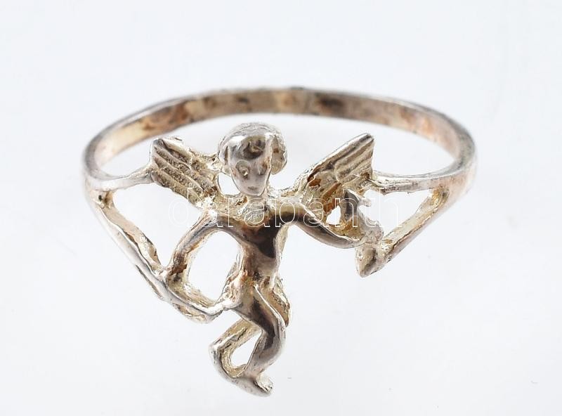 Ezüst(Ag) angyalos gyűrű, jelzett, méret: 58, bruttó: 1,7 g