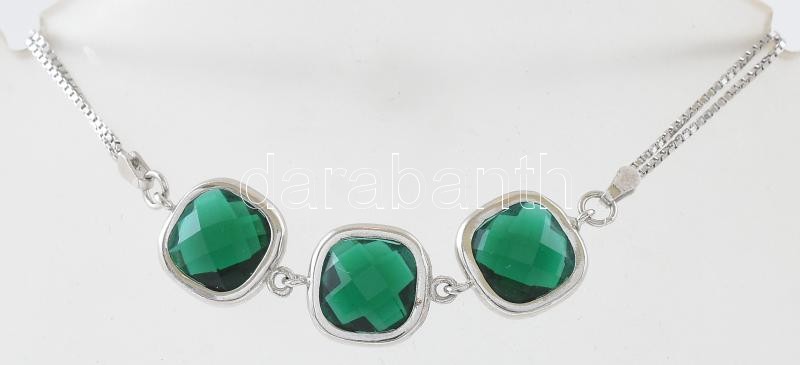 Ezüst(Ag) karkötő zöld kővel, jelzett, h: 17 cm, bruttó: 4,7 g