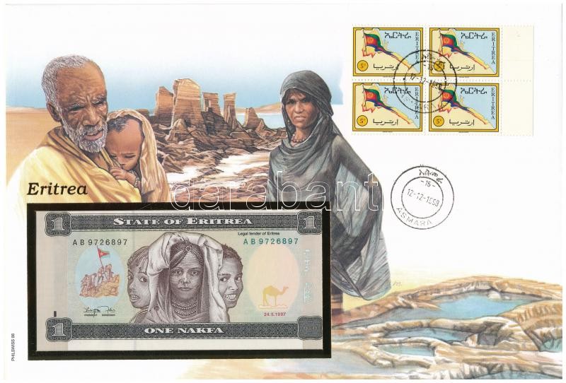 https://www.darabanth.com/en/415-Online-auction/415.0/Numismatics/Envelopes-with-Coins-and-Banknotes~2000004/Eritrea-1997-1N-felbelyegzett-boritekban-belyegzessel-TI-Eritrea-1997-1-Nakfa-in-envelope-w~II2589044