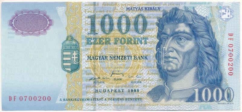 https://www.darabanth.com/en/415-Online-auction/415.0/Numismatics/Hungarian-Banknotes~2000007/1998-1000Ft-DF-0700200-TII--Adamo-F555~II2581991