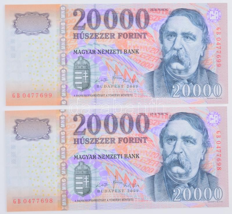 2009. 20.000Ft (2x) sorszámkövetők "GB 0477698 - 0477699" T:...