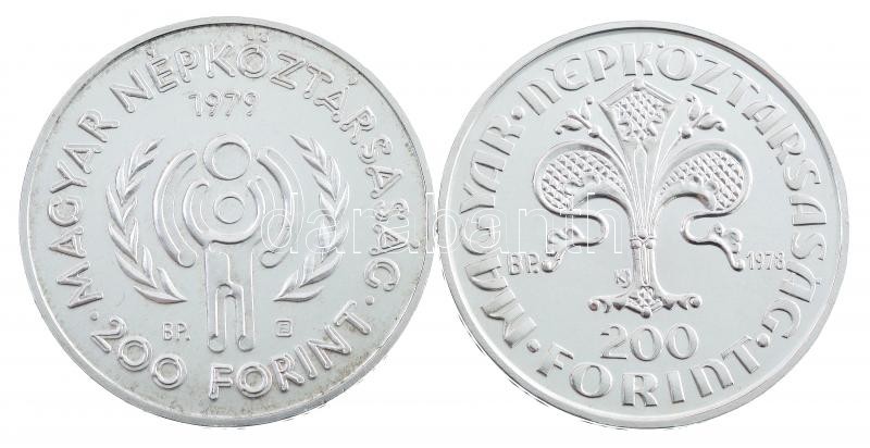 1978. 200Ft Ag "Első magyar aranyforint" + 1979. 200Ft Ag "Nemzetközi gyermekév" T:BU patina, ph