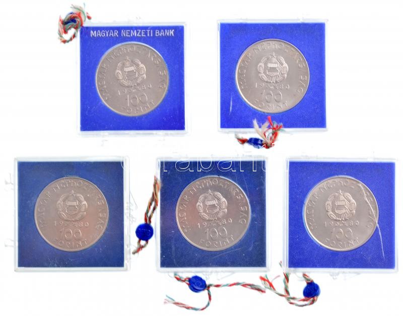 1980. 100Ft Ni "Szovjet-magyar közös űrrepülés" plombált MNB tokban (5x) T:BU 3db tok sérült