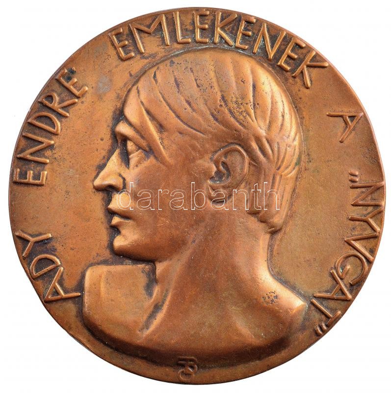 Description: Beck Ötvös Fülöp (1873-1945) 1928. "Ady Endre emlékének a ,,Nyugat'' / ,,Repülj hajóm..... Rajtad a holnap hőse'' Br emlékérem (65mm) T:2- ph.