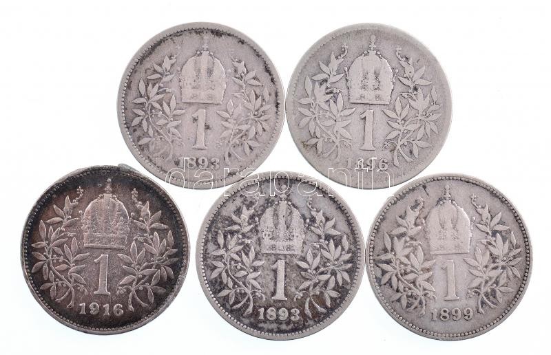 Ausztria 1893-1916. 1K Ag "I. Ferenc József" (5x) T:2-3 patina