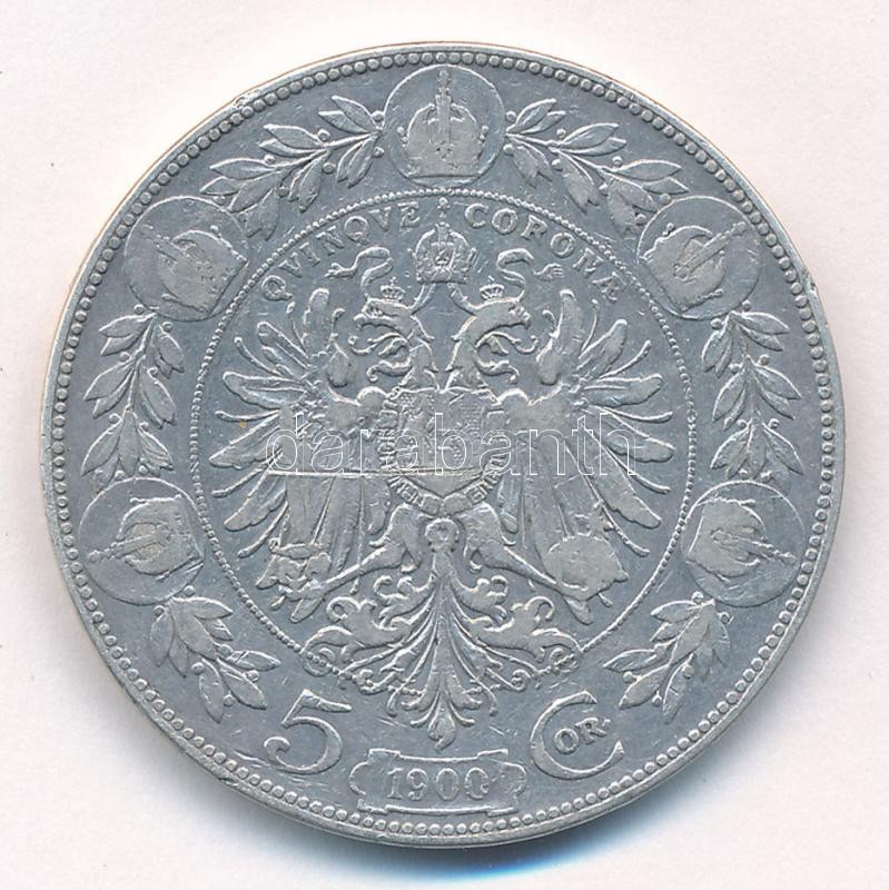 https://www.darabanth.com/en/415-Online-auction/415.0/Numismatics/Worldwide-silver-and-metal-coins~2000015/Ausztria-1900-5K-Ag-Ferenc-Jozsef-T3-karc-Austria-1900-5-Corona-Franz-Joseph-CF-scratched-K~II2604470