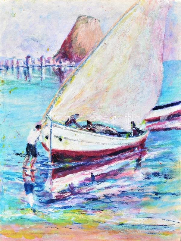 Jelzés nélkül: Vitorlás. Olaj, papír, 33×25 cm