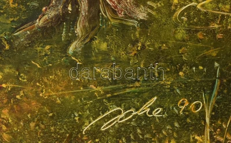 Heil József (1929-): Táj. Olaj, farost, jelzett. Dekoratív fa keretben. 48×34 cm