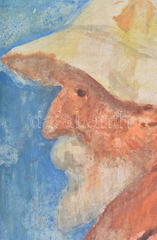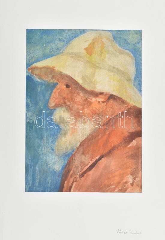 Lázár Sándor (1916-1994): Kalapos portré. Akvarell, papír, jelzés nélkül, lap alján feliratozott. 28,5x20,5 cm. Soós Imre (1921-2013), műgyűjtő, művészeti író, a Kisgrafika folyóirat szerkesztője, a Magyar Nemzeti Galéria Baráti Köre alelnökének hagyatékából.