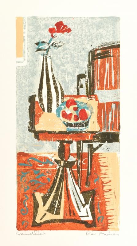 Rác András (1926-2013): Csendélet. Színes linómetszet, papír, jelzett,...