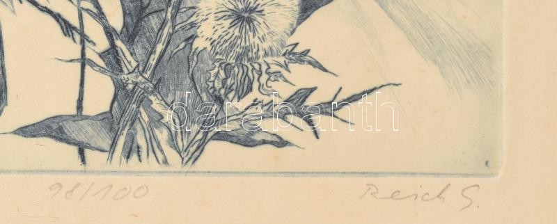 Reich Gábor (1951-): Tájkép II. Rézkarc, papír, jelzett, számozott (98/100). Kissé foltos. Dekroatív fakeretben, 23×17 cm