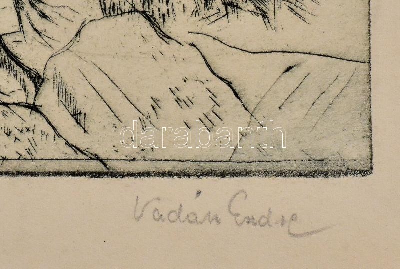 Vadász Endre (1901-1944): Rajzoló, rézkarc, papír, jelzett, kartonra k...