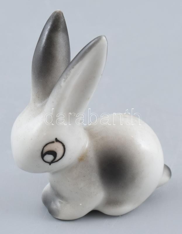 Hollóházi nyuszi figura. Kézzel festett, jelzett, minimális kopással. 8 cm