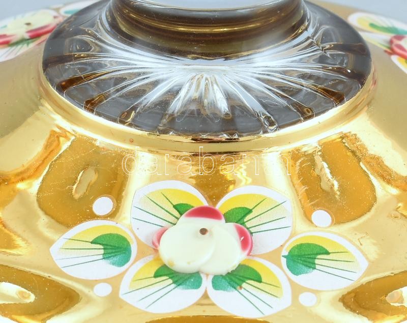 Nagy méretű talpas kínálótál, üveg, jelzés nélkül, kopásnyomokkal, m:1...