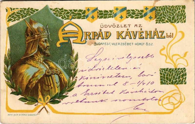 1903 Üdvözlet az Árpád Kávéházból. Budapest, Erzsébet körút 8. Róth Mó... https://www.darabanth.com/en/415-Online-auction/415.0/Postcards/Advertisement~1000076/1903-Udvozlet-az-Arpad-Kavehazbol-Budapest-Erzsebet-korut-8-Roth-Mor-es-Tarsa-Sze~II2555082