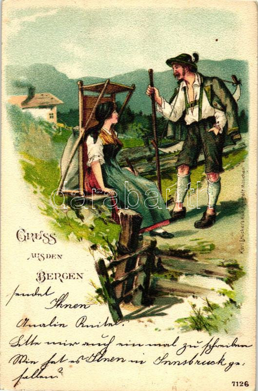 1899 Gruss us den Bergen / German folklore, litho (EK)