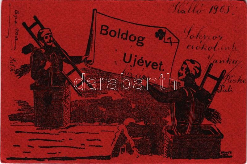 1905 Boldog Újévet! / New Year greeting art postcard with chimney sweepers. litho (EK)